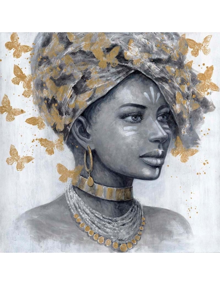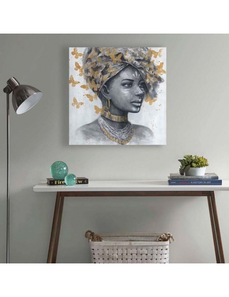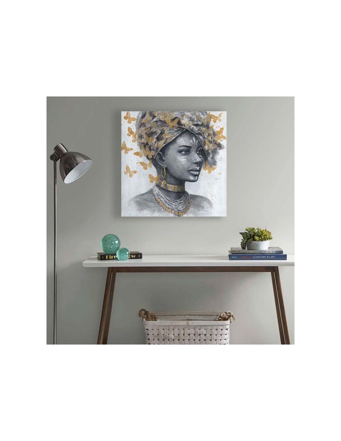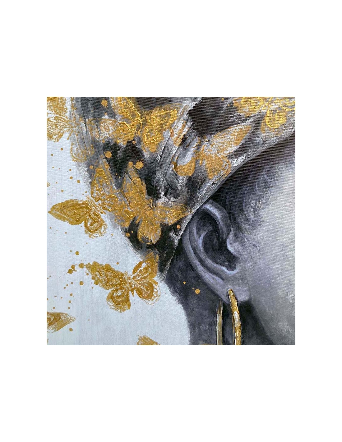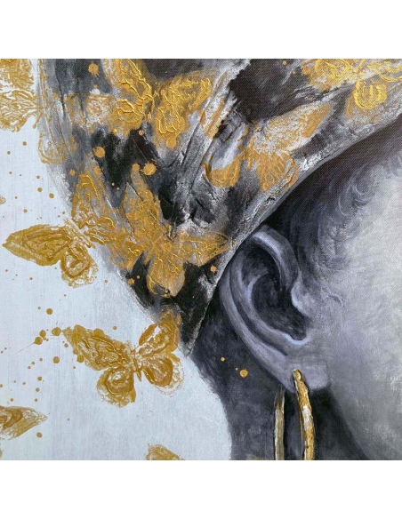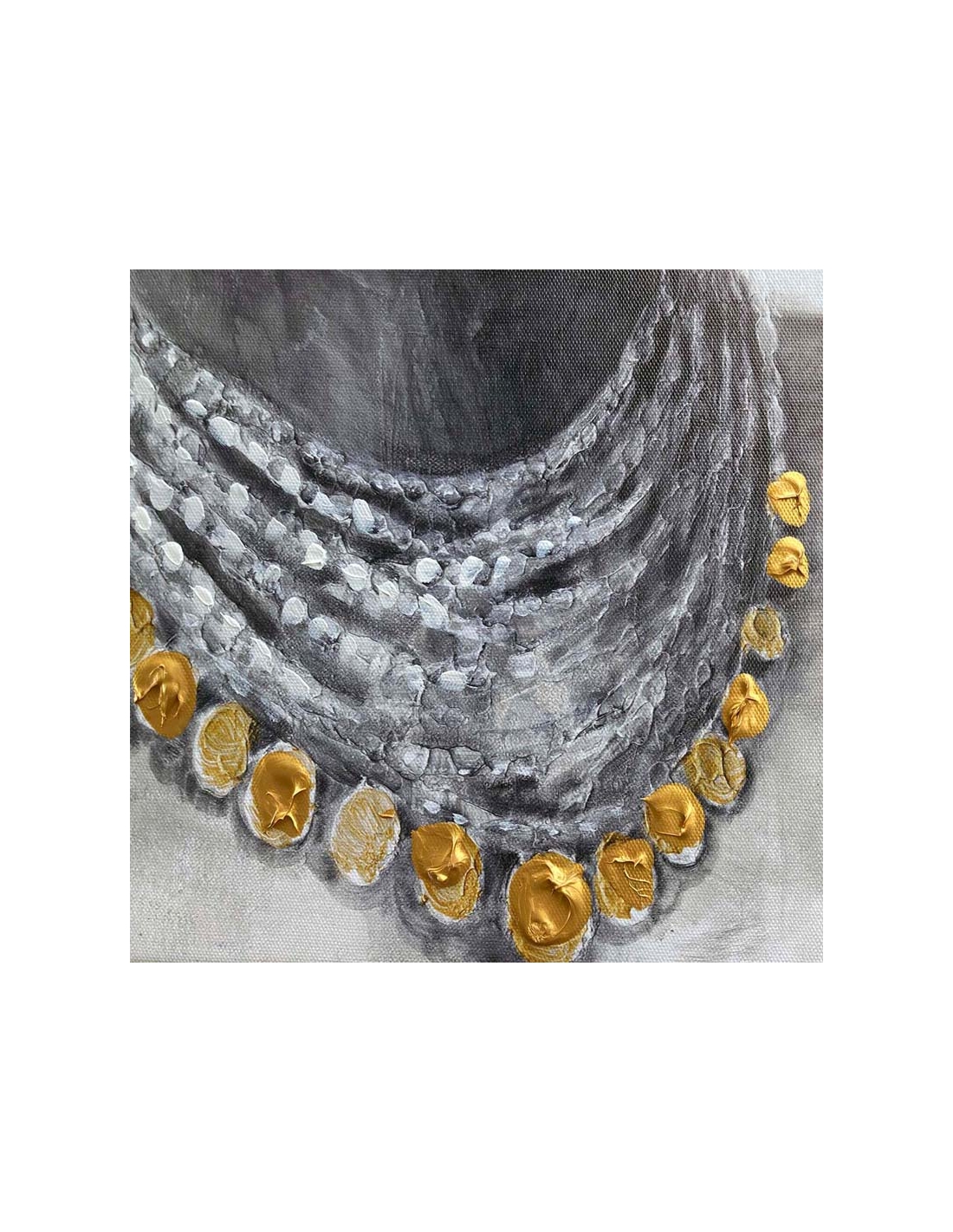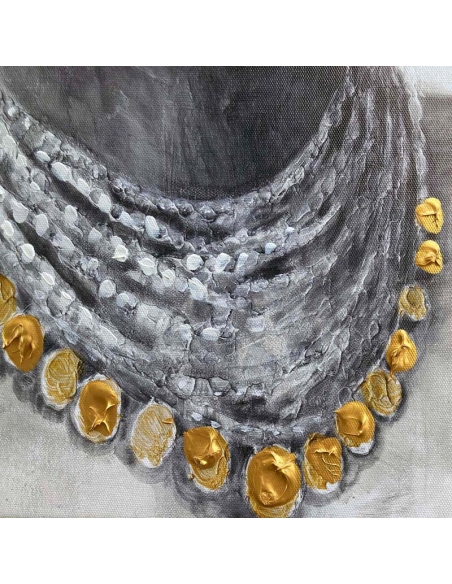 Cuadro al óleo sobre lienzo pintado a mano. Bastidor de madera de pino. Gama de colores neutros con toques dorados.