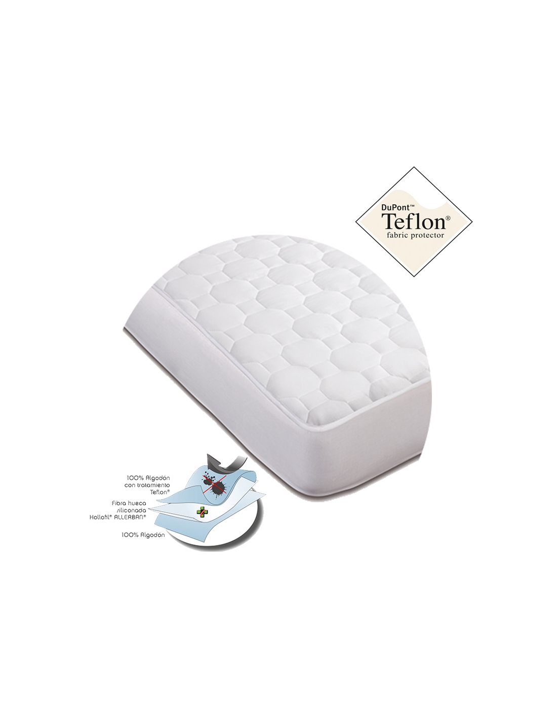 Cuenta con tratamiento Allerban® para combatir la aparición de ácaros, bacterias y hongos. Acabado natural en algodón para garantizar al máximo el confort. Su tratamiento Teflon® actúa como barrera antimanchas. Recomendado para personas alérgicas.
