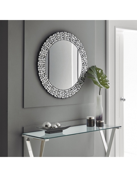 Espejo con diseño moderno de pared redondo. La parte trasera en madera DM.