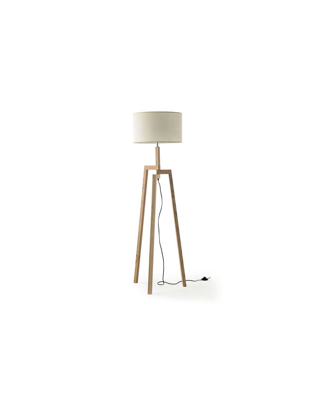 Lámpara de pie 46 x 170 cms. Estilo nórdico con materiales y acabados natural. Pantalla de tela en color crudo de 46 cms de diametro.